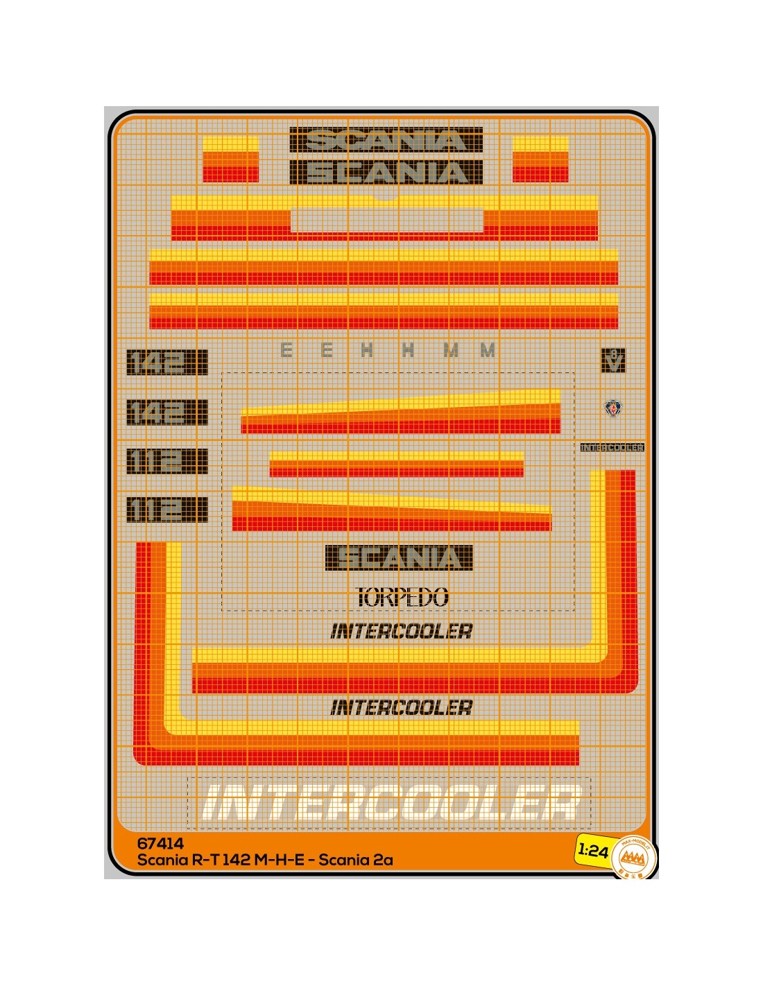 Decal kit for Scania 2° serie red/orange intercooler in 1/24 scale